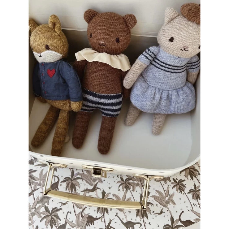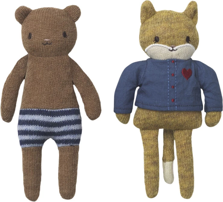 “Small, knitted friends made in 80 percent wool and 20 percent nylon. Hight- 14 cm. Age recommendation- 3 YR + ”