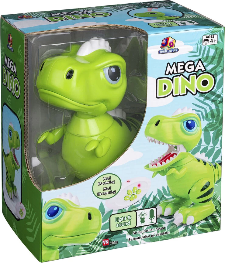 Robotdinosaur med infrarød styring 20 cm Med lys i øjnene og lyde Går eller glider afsted i alle retninger Bruger 6 stk AAA-batterier