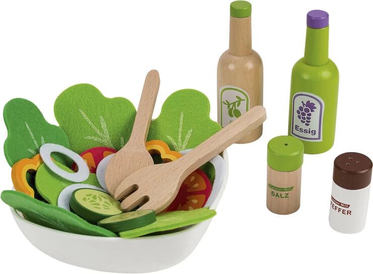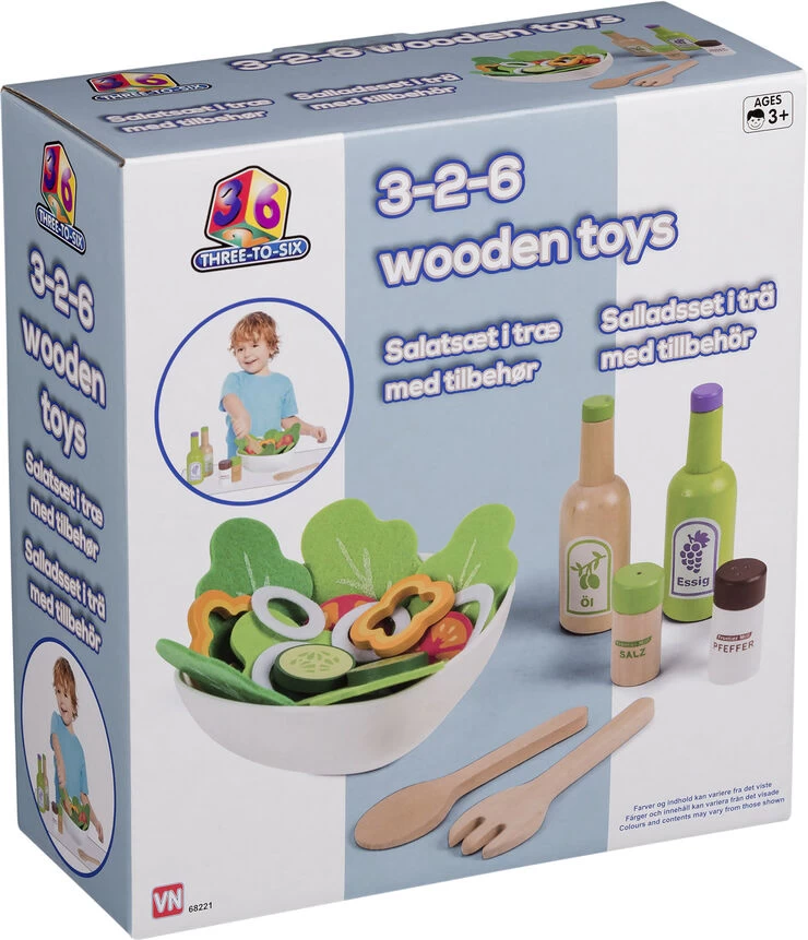 Salatsæt i træ med tilbehør
