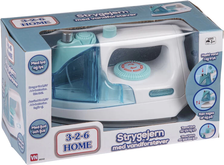 Strygejern Med vandforstøver. lys og lyd Bruger 2 stk AA-batterier