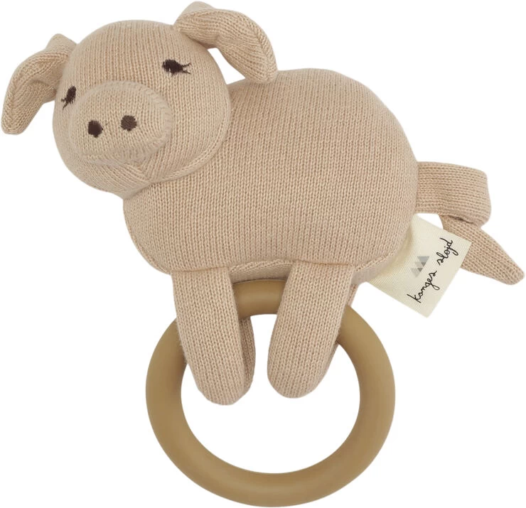 Activity toy made in 100 percent organic cotton. The ring is made of silicone and is safe for babies to chew on.