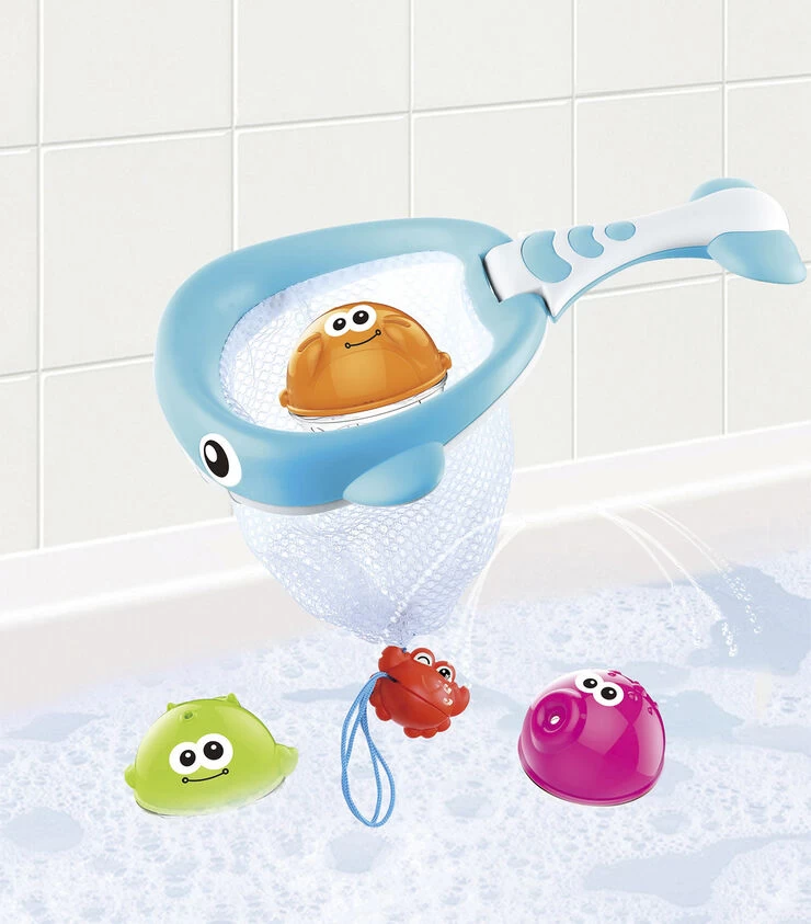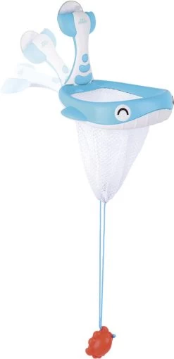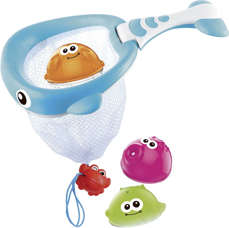 Vandlegsfiskesæt Sæt med net. hvor håndtaget kan vippes og op ned, 3 havdyr og krabbe til at lukke bunden af nettet Sæt nettet fast med sugekop eller hold det i hånden og fang figurerne