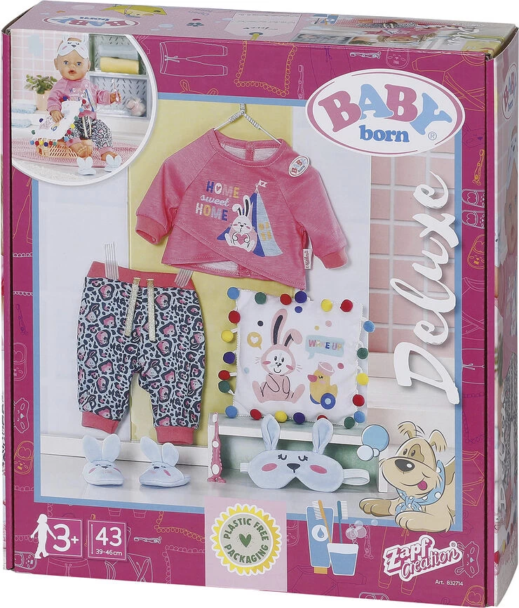 BABY born Bad Luksus Godnat 43 cm med bluse, bukser, tøfler,sovemaske, pude og tandbørste Fra 3 år