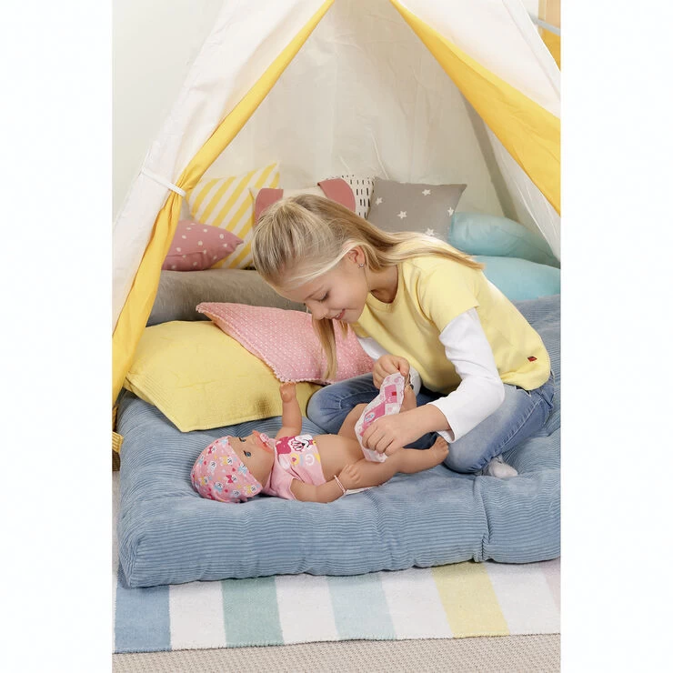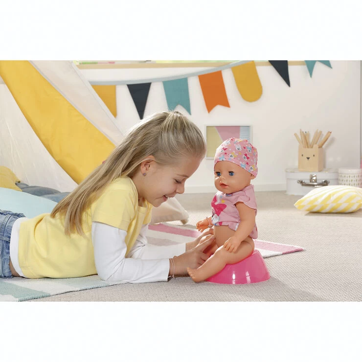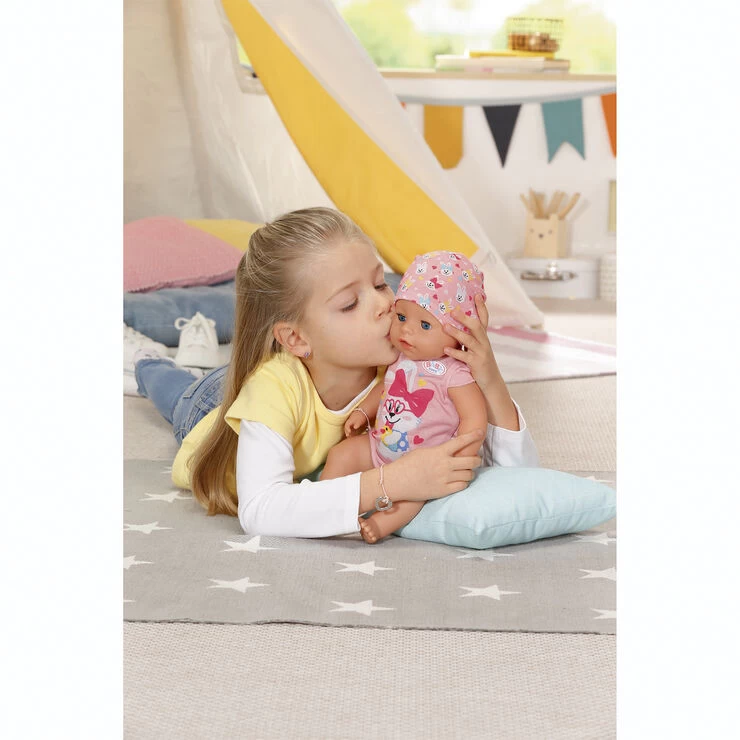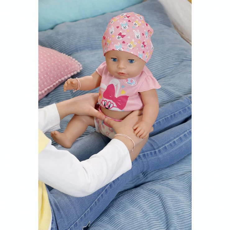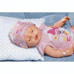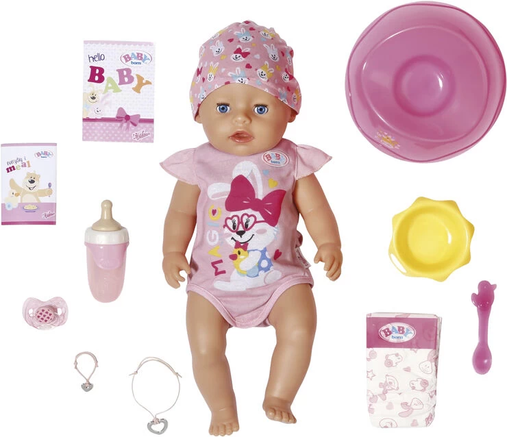 BABY born Magi pigedukke 43 cm med body og hue,potte, ble tallerken med ske,1 portion grød, 1 magisk sut, 1 flaske, 1 fødselsattest, venskabsbånd til barn og dukke Fra 3 år