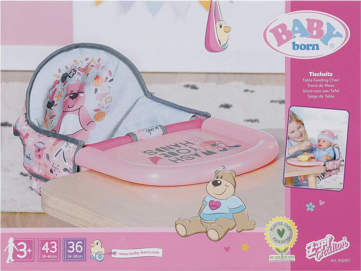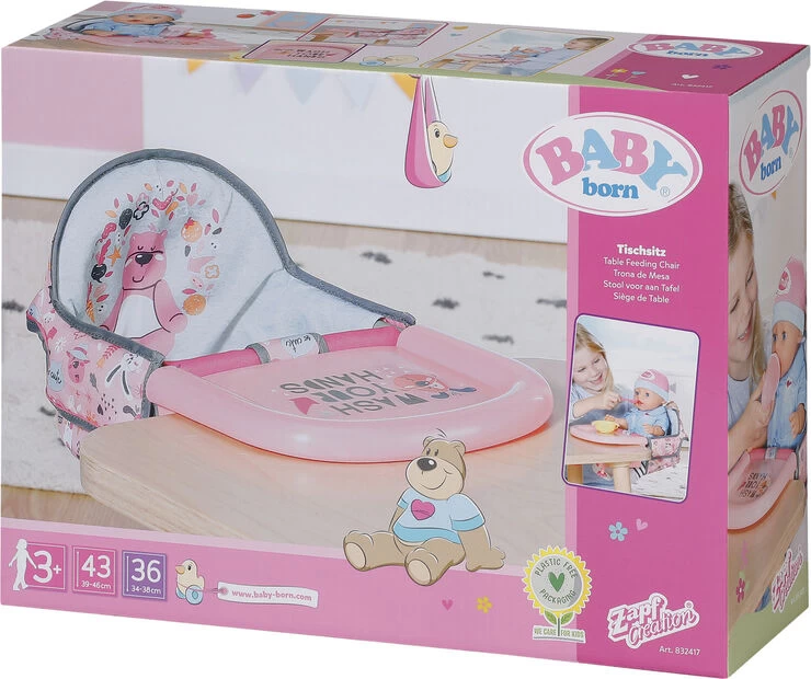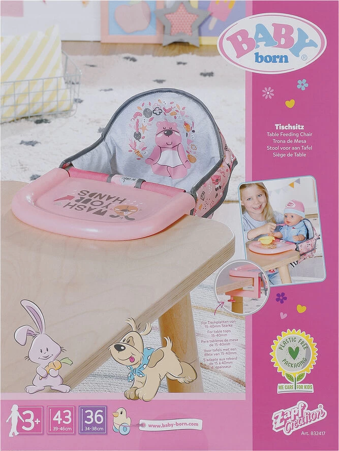 BABY born stol til borde, der har en bordpladetykkelse på 15-40 mmOriginalt tilbehør af høj kvalitet til BABY born dukken i størrelse 36 og 43 cm Fra 3 år