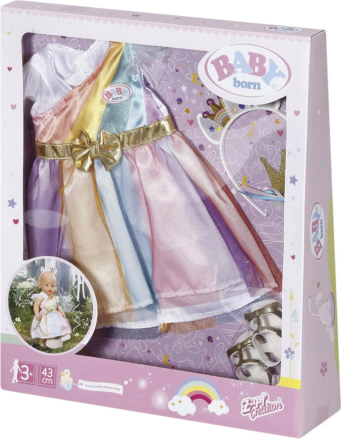 BABY born Luksus prinsesseoutfit 43 cm med kjole og sko, hårbånd med pins og scepterFra 3 år