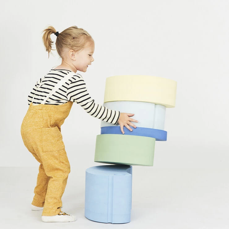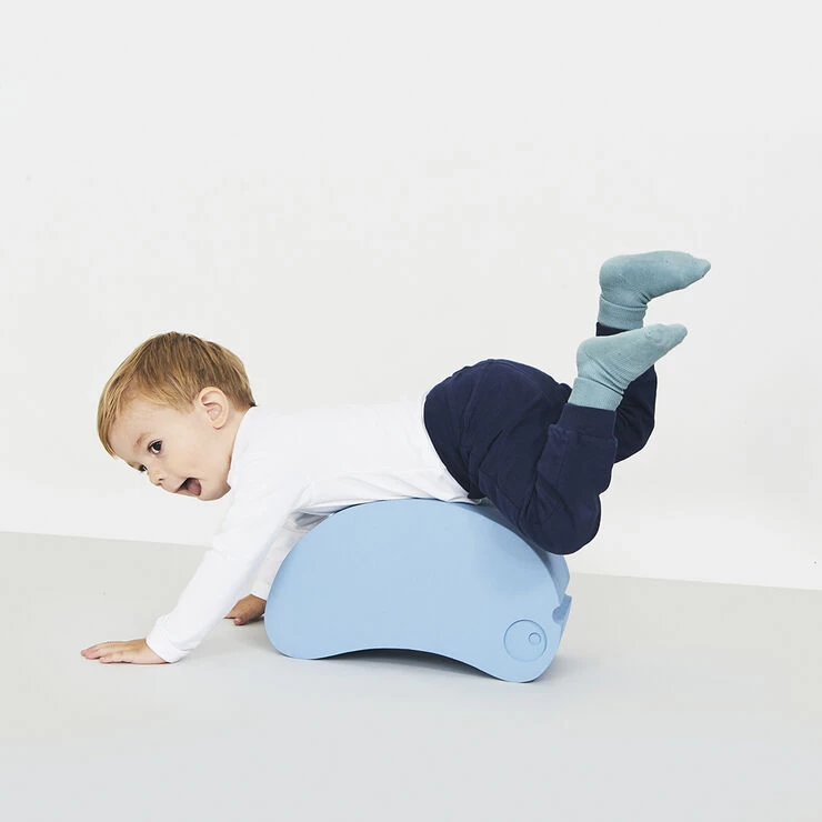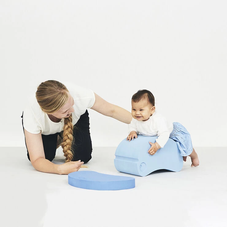 bObles Ælling findes i to størrelser og inspirerer til en masse nye tumlelege fuld af fantasi. Barnet kan siddende gynge sig gennem bølgerne, stå balance på Ællingens ryg og surfe, og ligge på maven henover og vippe. Vendes Ælling om, har du en udfordrende balancebro, som barnet kan gå på og ligge henover. Både balance- og koordinationsevne bliver trænet. Ællingen elsker at blive tumlet på, og har man flere af dem, kan de stables til forskellige siddehøjder. Ælling i de tre farver (rosa, grå og blå) har også en lille ven. Den kommer nemlig sammen med en Ællingeplade, på 4 cm i tykkelsen. Pladen kan bruges til alverdens ting tag den med i svømmehallen eller på stranden, hvor den er oplagt som svømmeplade, læg den ovenpå Ælling som for ekstra højde, brug den som et ekstra trappetrin i din ællingetrappe, få den til at balancere oven på hovedet når du går rundt i stuen eller klatrer på din tumlebane. bObles tumlemøbler er udført i EVA-skum og er testet til børn. Den skridsikre overflade er blød, let at rengøre og sætter ikke mærker i gulvet. bObles vaskes med sæbe og vand. Tag det med under bruseren eller ud på en svømmetur, da bObles kan flyde. Alle bObles tumlemøbler er unikke de er færdiggjort i hånden og kan derfor variere i størrelse.
