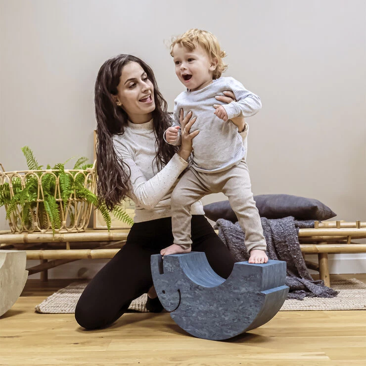 Elefant M+ er et fantastisk tumlemøbel til børn i alle aldre, og med dens unikke størrelse og smukke farver vil den uden tvivl blive et hit på børneværelset. Den lille baby kan træne nakken ved at ligge hen over den behagelige runding på Elefant. Ligesom baby kan styrke ryg og vestibulærsans ved at ligge i maven på Elefant og vippe frem og tilbage. Når dit barn skal lære at gå, er bObles Elefant perfekt at rejse sig op ad, fordi overfladen er skridsikker og blød, så hverken dit barn eller dit gulv slår sig i opstartsfasen. Elefant er allerede et ikonisk møbel til både stuen og børneværelset men styrken ligger i høj grad i dens multifunktion. For ud over at barnet kan bruge den som stol, vippebræt og gyngehest, så slår den det meste legetøj, når der skal bygges tumlebaner, vaskes hænder eller bages boller. bObles tumlemøbler i Marble Nature farver er en smuk og multifunktionel tilføjelse til dit hjem. Med inspiration fra naturens elementer, smelter de varme marmorfarver ind i indretningen og giver et både legende og afdæmpet udtryk til glæde for både børn og forældre.