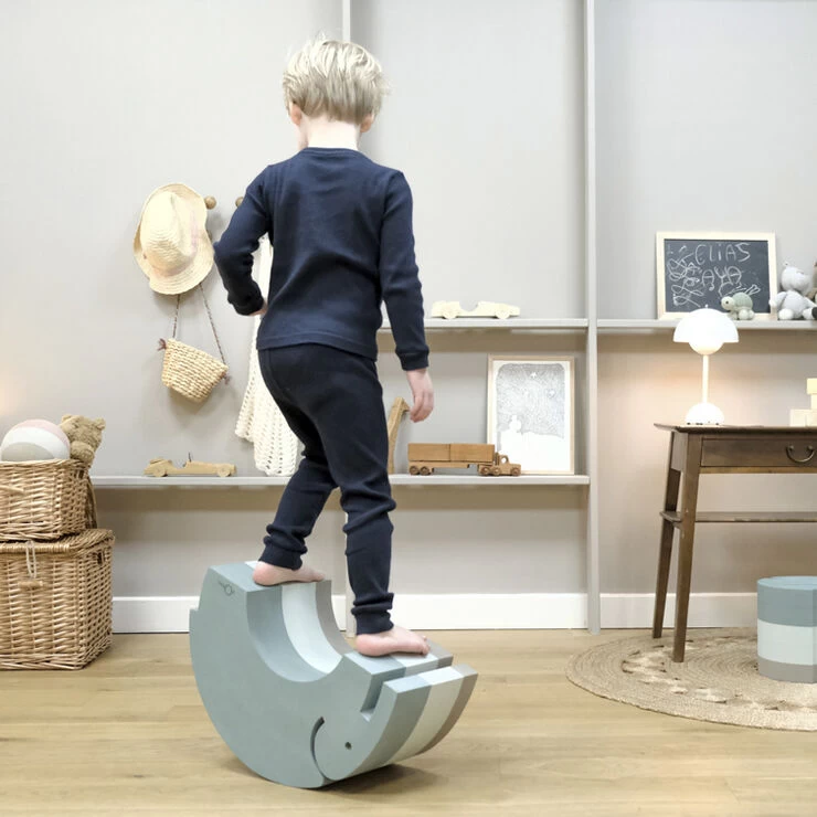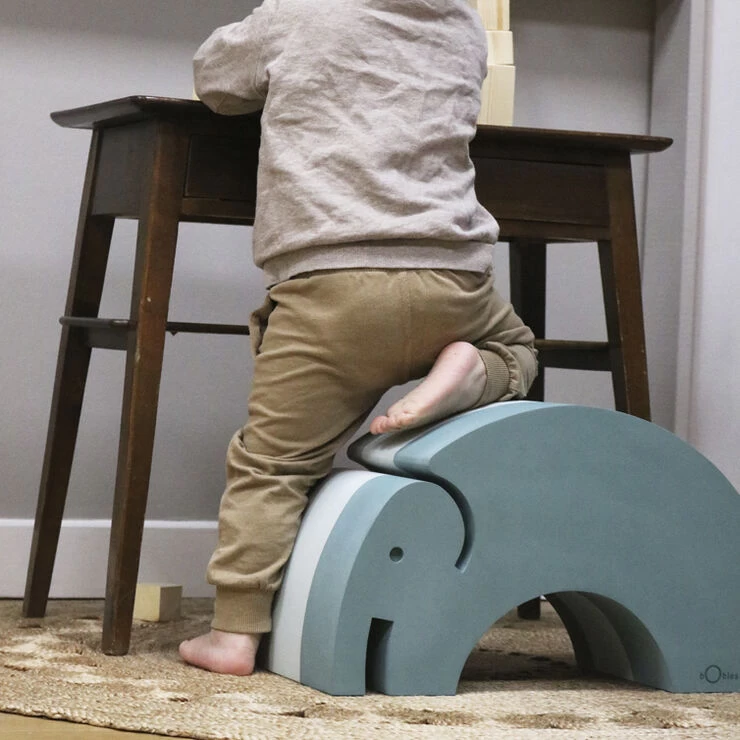 Elefant M er et fantastisk tumlemøbel til børn i alle aldre, og med dens enkle design og smukke farver vil den uden tvivl blive et hit på børneværelset.Den lille baby kan træne nakken ved at ligge hen over den behagelige runding på Elefant. Ligesom baby kan styrke ryg og vestibulærsans ved at ligge i maven på Elefant og vippe frem og tilbage.Når dit barn skal lære at gå, er bObles Elefant perfekt at rejse sig op ad, fordi overfladen er skridsikker og blød, så hverken dit barn eller dit gulv slår sig i opstartsfasen.Elefant er allerede et ikonisk møbel til både stuen og børneværelset men styrken ligger i høj grad i dens multifunktion. For ud over at barnet kan bruge den som stol, vippebræt og gyngehest, så slår den det meste legetøj, når der skal bygges tumlebaner, vaskes hænder eller bages boller.De naturlige farver er omhyggeligt udvalgt, for at skabe rolige, sanselige og inspirerende omgivelser for barnet at lege i, samtidig med at farverne, såvel som tumlemøblerne er tidløse og kan holde til mere end én sæson.