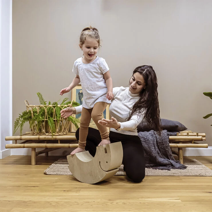 Den lille baby kan træne nakken ved at ligge hen over den behagelige runding på Elefant. Ligesom baby kan styrke ryg og vestibulærsans ved at ligge i maven på Elefant og vippe frem og tilbage.