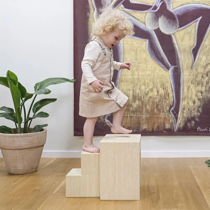 Med bObles Square table chair har du 3 tumlemøbler i alt, som både det lille og store barn kan tumle uendeligt med. Sammen udgør delene det perfekte første bord- og stolesæt! Dit barn kan sidde på skamlerne og fordybe sig eller bruge alle delene som selvstændig tumlebane, når det er tid til aktiv leg. Dit barn vil også kunne udfordre koordinationsevnen ved at stable delene til et højt, højt tårn på tå, eller kravle igennem den største firkant og komme helt ned i gulvniveau. bObles Square table chair er perfekt til det mindre hjem, da delene nemt kan stables, og med dets smukke farver, inspireret af naturens elementer, vil det let pryde et hvert hjem og børneværelse.