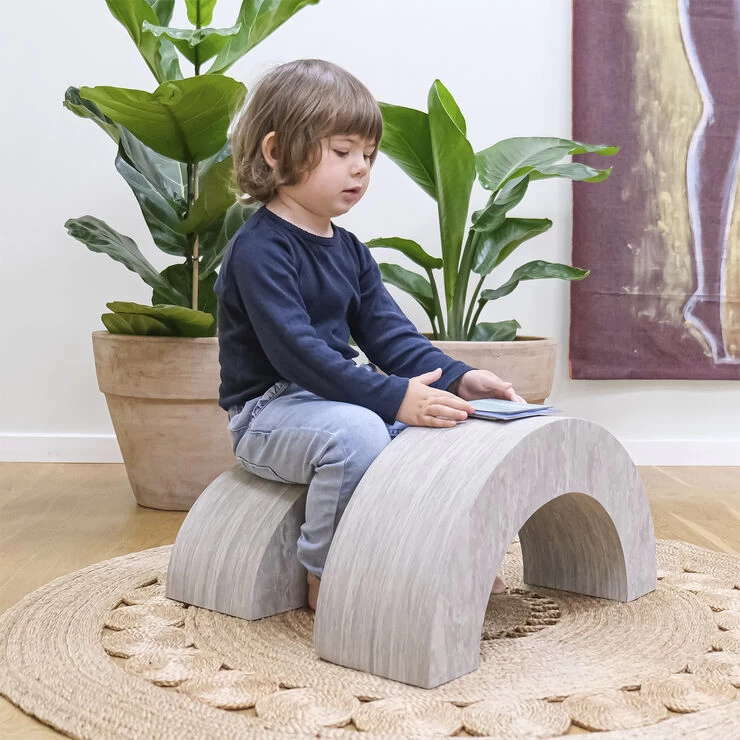 Tunnel er sjov motorisk leg for alle aldre. bObles Tunnel er et unikt tumlemøbel med et enkelt formsprog, der let forener bevægeglæde og leg med enkelhed i hjemmet. bObles Tunnel er både vippe og gyngehest fra baby til barn, der er skabt til de smukke skandinaviske hjem. Selv den lille baby vil elske Tunnels vip. Læg baby inde i buen og brug den som vugge, eller træn nakke og ryg ved at lægge baby på maven over den bløde bue. Sættes de to dele sammen, kan Tunnel bruges på samme måde som den store Elefant og Kylling som en store lækker vippe for den lille ny. For de helt store børn er Tunnel også et sjovt vippebræt. Indret børneværelset med Tunnel og få en lille stol med bord, en skammel eller en lille trappe, når reolen skal nås. Eller nyd, at bObles Tunnel er et smukt møbel, som vil pynte i stuen og samtidig giver mange timers sjov leg for børnene. bObles tumlemøbler i Marble Nature farver er en smuk og multifunktionel tilføjelse til dit hjem. Med inspiration fra naturens elementer, smelter de varme marmorfarver ind i indretningen og giver et både legende og afdæmpet udtryk til glæde for både børn og forældre. Ligesom bObles andre tumlemøbler, er Marble Nature-serien lavet i fast EVA-skum med en blød overlade, som inviterer til leg, fantasi og motorisk udfoldelse for baby, tumling og barn. Samtidig fungerer de fantastisk som interiør til hele hjemmet.