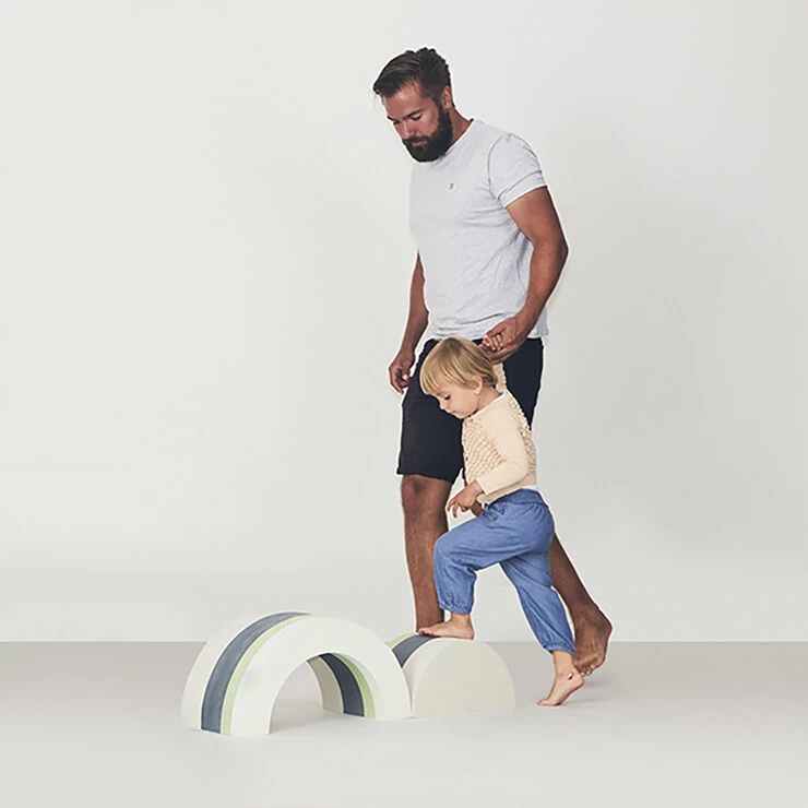 Tunnel er sjov motorisk leg for alle aldre Med bObles Tunnel får du et unikt tumlemøbel med et enkelt formsprog, der let kan forene bevægeglæde og leg med enkelhed i hjemmet. Tunnel består af to dele, der kan bruges hver for sig og har de samme funktioner som bObles Elefant og Kylling. Tunnel styrker dit barns balance og koordinationsevne. Dit barn kan f.eks. vippe fra side til side eller frem og tilbage. Læg dit barn på maven få øjenkontakt og gyng frem og tilbage. Stå på toppen – hop ned og kravl ind under Tunnelens bro. Tril en bold igennem tunnelen eller leg titte -bøh. Indret børneværelset med Tunnel og få en lille stol med bord, en skammel eller en lille trappe, når reolen skal nås. bObles tumlemøbler er udført i EVA-skum og er testet til børn. Den skridsikre overflade er blød, let at rengøre og sætter ikke mærker i gulvet. bObles vaskes med sæbe og vand. Tag det med under bruseren eller ud på en svømmetur, da bObles kan flyde. Alle bObles tumlemøbler er unikke de er færdiggjort i hånden og kan derfor variere i størrelse.