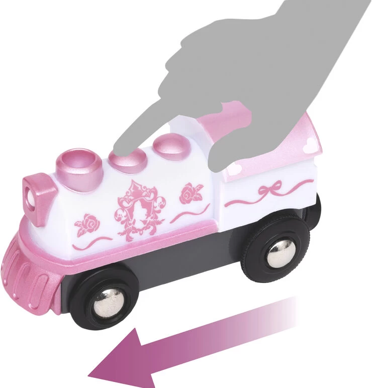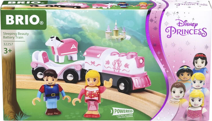 Vågn op til et nyt. lykkeligt eventyr med det batteridrevne 33257 Disney Princess Tornerose batteridrevne tog Dette batteridrevne legetøjstog har en forlygte, der viser vejen frem til Princess Aurora, og det har skinnende pink detaljer og en elegant prinsessevogn Dette legetøjstog har en forlygte, skinnende pink detaljer og en elegant prinsessevogn Tryk skorstenen ned for at starte det batteridrevne tog, mens Prince Phillip følger med i galop på sin kloge hest Samson Efterhånden som barnet vokser, kan togbanen vokse med, idet dette Disney-togsæt passer sammen med alt andet BRIO togbanelegetøj Træn kreativitet og rolleleg, når de fantasifulde figurbaserede historier udspiller sig. fra 3 år