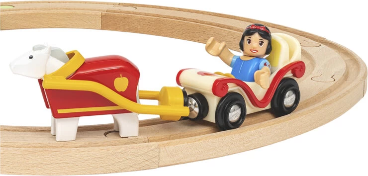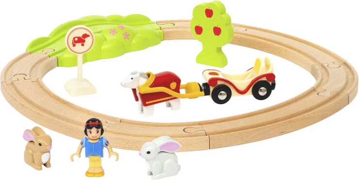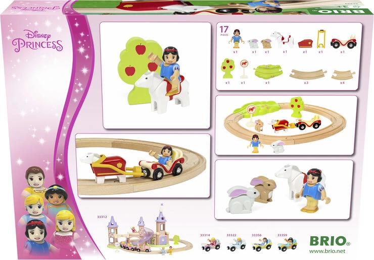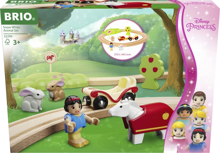 Tag med Disney Princess Snehvide og alle hendes fantastiske dyrevenner på et eventyr i skoven med 32299 Disney Princess Snehvide Togsæt med dyr Hop om bord i Snehvides vogn. og sid bag den glade, hvide hest, når du tager på en fantasifuld tur gennem den lille, grønne skov Sig hej til de to små kaniner, når du kører forbi dem Men pas på de blanke, røde æbler fra træet, et af dem kan være forgiftet! Tag med Disney Princess Snehvide og alle hendes fantastiske dyrevenner i dette Disney Princess Togsæt med dyr Kør med Snehvide toget gennem skoven, og mød alle skovens dyr Efterhånden som barnet vokser, kan togbanen vokse med. idet dette Disney-togsæt passer sammen med alt andet BRIO togbanelegetøj. Til børn i alderen 3-