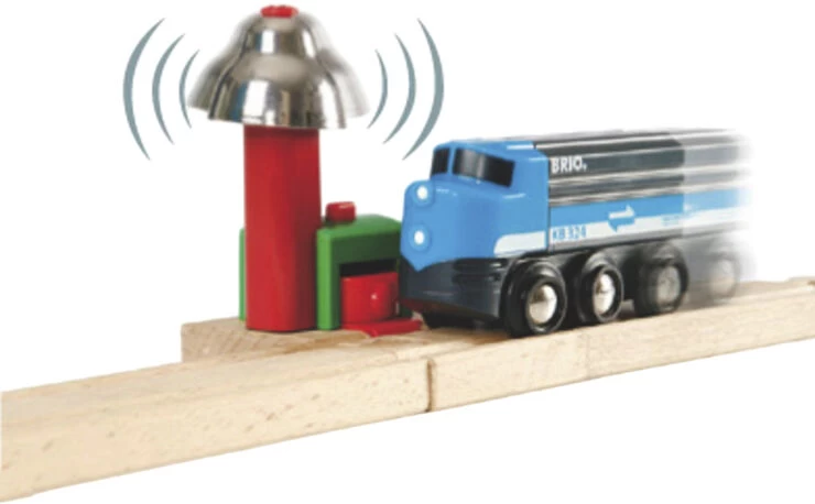 Toglyd uden batteri! Klokkens ringen udløses magnetisk, når et tog passerer Lydeffekten kan også aktiveres manuelt Længde 54 mm Fra 3 år
