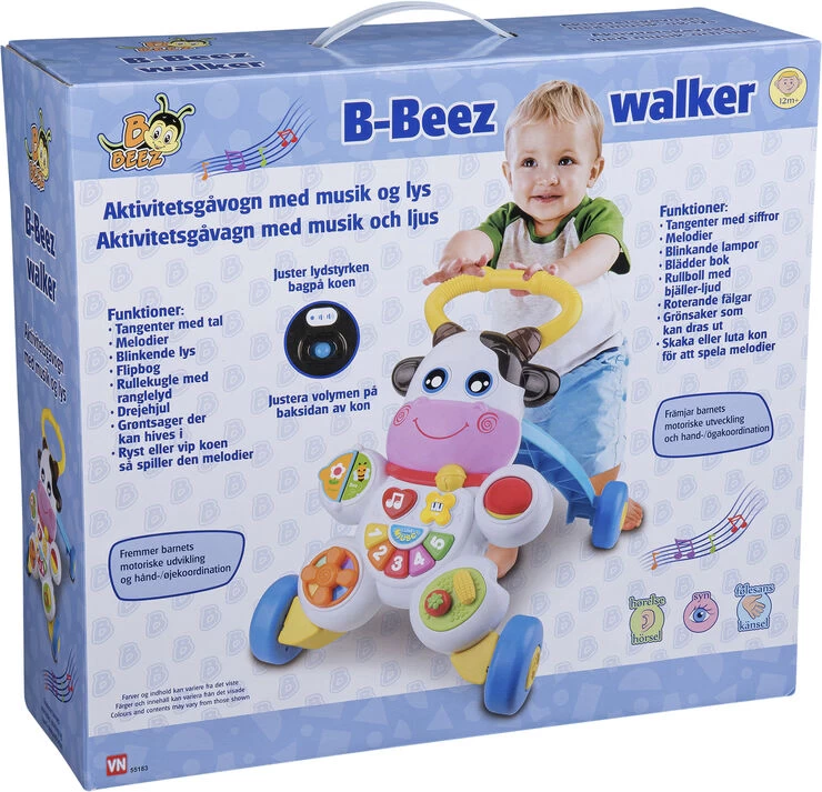Aktivitetsgåvogn med musik og lys Med musik. lys/lyd og mange forskellige aktiviteter Bruger 3 stk AA-batterier
