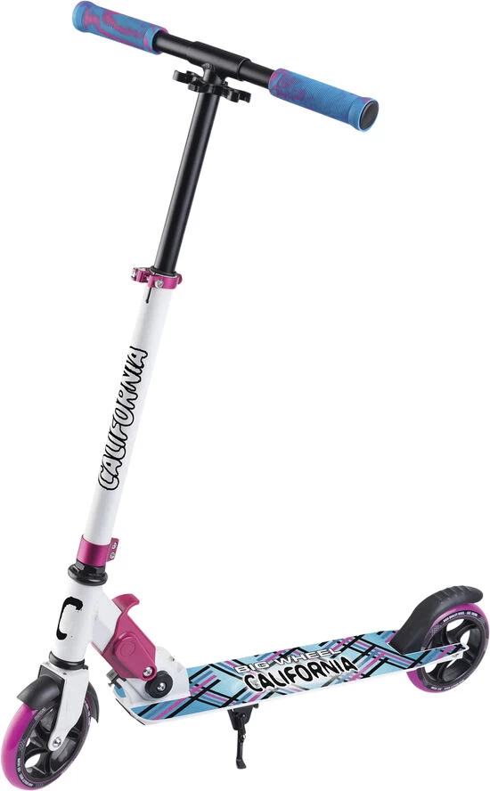 California big wheel løbehjul hvid Specifikationer: Aluminiumdeck med mat coating og griptape 145 mm PU-hjul med PP core ABEC 7 chrome kuglelejer Justerbart styr fra 71-91 cm Slide-lock foldemekanisme Skridsikre gummihåndtag Bagbremse Bæreevne: 100 kg EN14619 godkendt sportsløbehjul