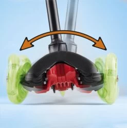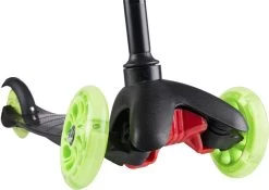 California 3-hjulet sort løbehjul med flex styring og LED-lys i hjulene Smart løbehjul til de mindste med 2 store forhjul og fleksibel styrestang samt lys i hjulene Specifikationer: Fleksibel styring Hjulene lyser op. når du kører ABEC 7 kuglelejer Justerbart styr fra 52-75 cm Bagbremse Kan bære 20 kg