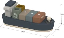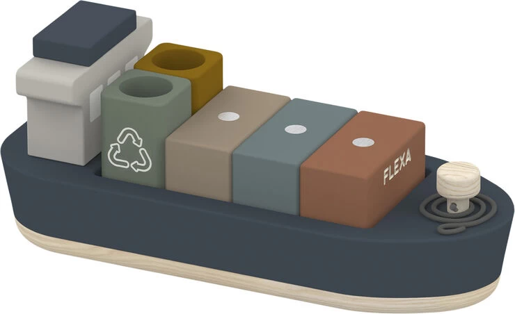 Skibets containere og affaldsspande kan på- og aflæsses med en magnet. Kombinér containerskibet med FLEXAs lastbil- og kransæt for at hjælpe dit barn med at forstå konceptet infrastruktur og kende forskel på at rejse til lands og til vands.