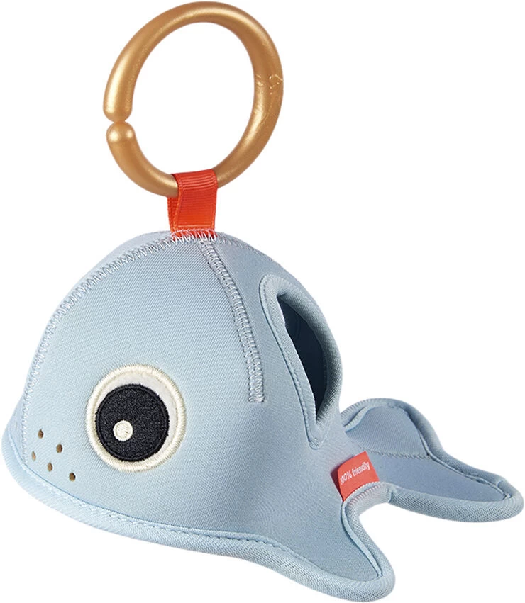 Hvalen Wally, der er til sjask, pjask og sjov, forvandler plaskende vandsjov til den bedste tid på dagen. Aktivitets-badelegetøjet i neopren er blødt, nemt at holde ved og dens sanselige funktioner hjælper de små med at lære, mens de bader. Giv Wally en dukkert og lad derefter vandet regne ved at tippe den. Denne mægtige ‘Sea friend’ vil elske at give dig en pjaskende god oplevelse, når det er badetid.