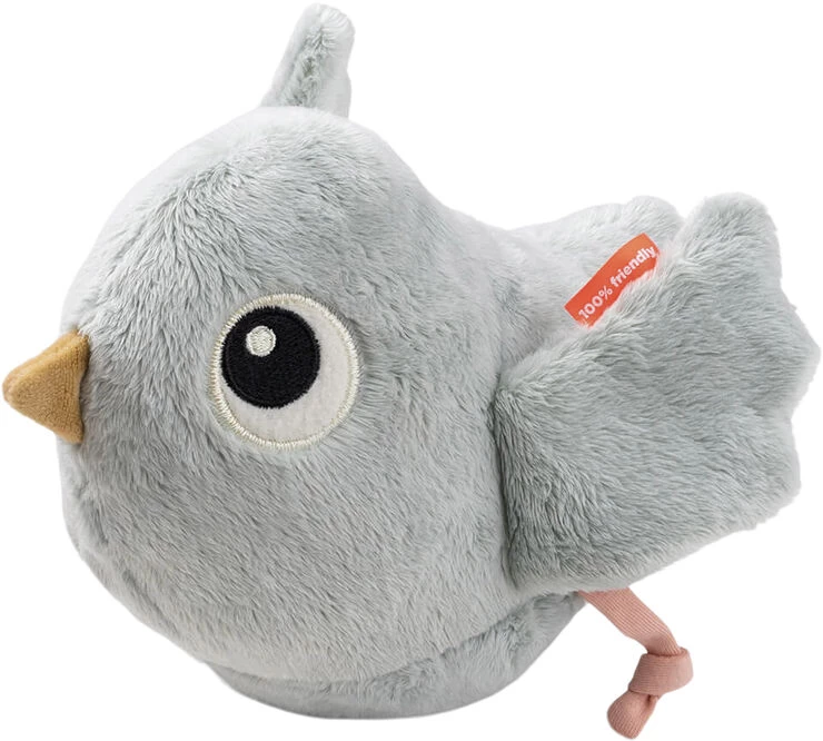 Gør dig klar til tonsvis af babygrin med Birdee som tumling legetøj. Den kære og sensoriske fugl laver en sød klokkelyd, når den vælter til siden, men Birdee er hurtigt på benene igen. Tumling-legetøjet er en skøn, sansestimulerende underholdning. Birdee har en blød overflade og en sød klokkelyd i maven. Vingerne er nemme at fange for små, nysgerrige fingre, og de laver en sjov knitrelyd, når man rører ved dem. Tumling-legetøjet Birdee har en skøn, blå farve og små ben, der stråler frem i en lys pink farve. Dine børn vil elske fuglens søde lyd dens bløde tekstur.