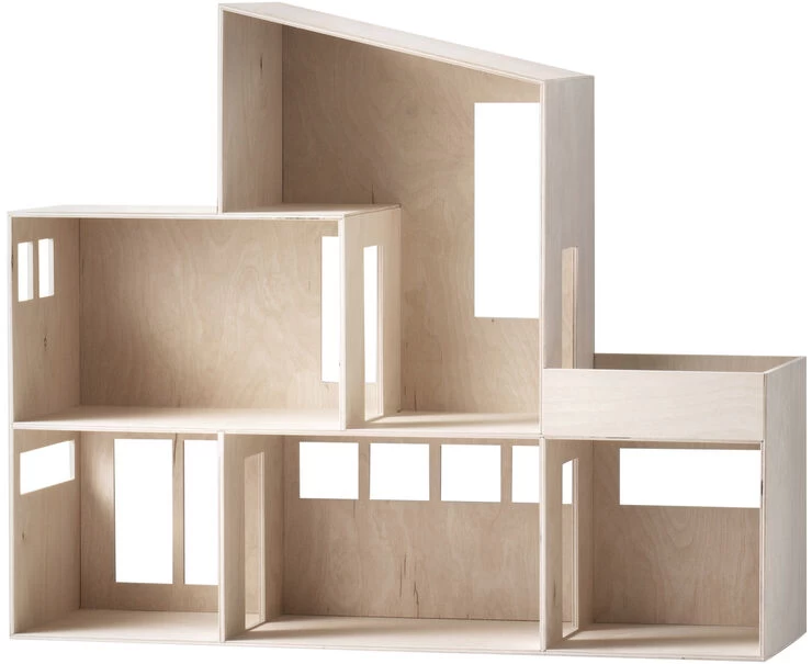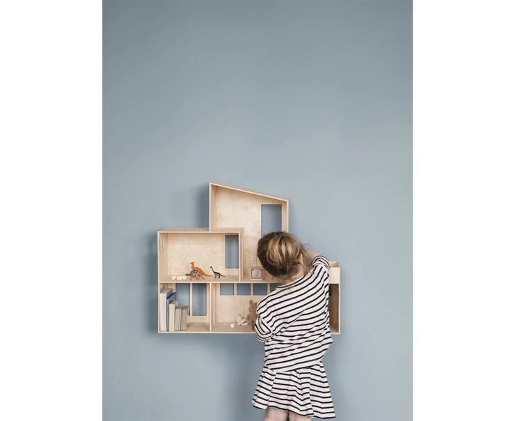 Lad barnets fantasi få frit løb med ferm LIVING’s genfortolkning af et klassisk Funkis hus i naturligt krydsfiner. Husets to etager bare venter på indflytning af dine yndlingsbøger, små dukker eller andre fine pyntegenstande. Dette stilfulde hus har rene linjer og et moderne præg og et sikkert hit hos både børn og voksne som en fantastisk dekorativ hylde til opbevaring