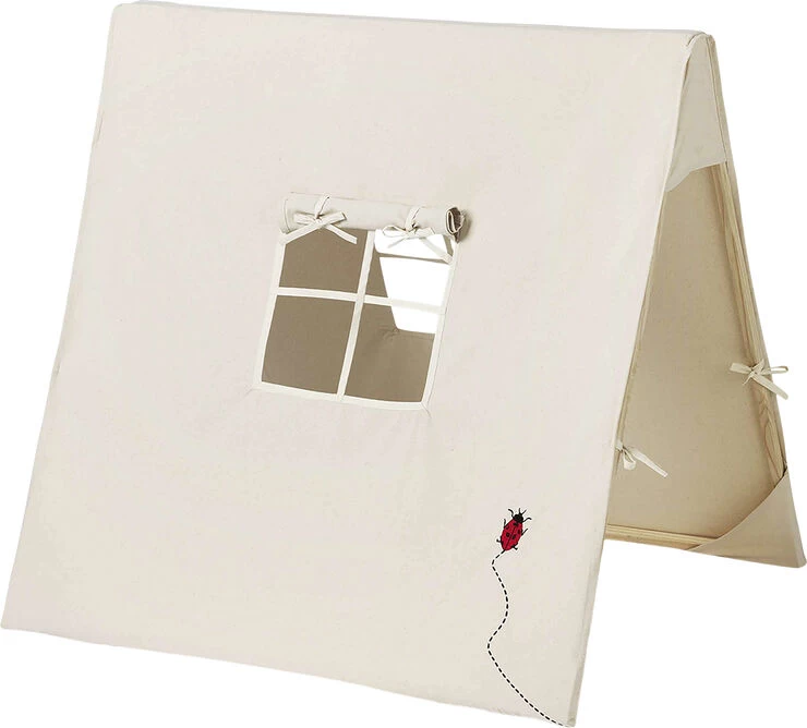 Skab et gemmested til dine børn med dette dekorative legetelt. Bomuldssejlet, der hænger ned fra en træramme, skaber et afskærmet sted, hvor børn kan lege, læse og slappe af der er desuden vinduer med gardiner, der kan rulles ned og give ekstra privatliv. Det smarte foldedesign gør, at det nemt og bekvemt kan transporteres og opbevares.