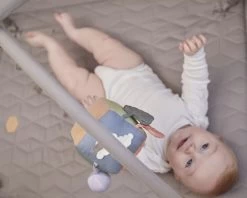 Aktivitetslegetøj med inspiration fra den nordiske natur, produceret i 100% økologisk bomuld. Den bløde firkant er designet med forskellige elementer på hver side bl.a. spejl, klokke, illustrationer, knitrelyde og forskellige dele, der er sjove for baby at røre ved. Et fint legetøj der både stimulerer barnets syn og høresans og udvikler barnets finmotorik. Med velcro-lukning på stroppen, der gør det muligt at bruge aktivitetslegetøjet på vores fine aktivitetsstativ, over puslebordet eller på autostolen.