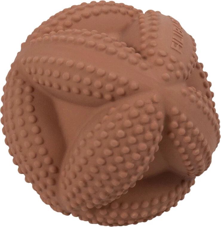 Isa grab ball er designet med henblik på motorisk udvikling. Med hjertet i alle vores produkter har vi skabt en bold kollektion, med taktile overflader, gode egenskaber og i fine farve nuancer. Isa grab ball er produceret i 100% naturgummi og er med til at stimulerer barnets motorik og gribereflekser. Med en fin mild klokke lyd indeni, stimulere den også barnets høre sanser. På overfladen er der produceret små dupper som giver et godt greb for selv helt små hænder, samtidige er alle kanter er bløde, som kan hjælpe på ømme gummer og er samtidige stimulerende for den taktile sans. Fantastisk produkt til at udvikle barnets finmotorik. Da bolden er håndlavet, kan udtrykket variere en smule fra billedet