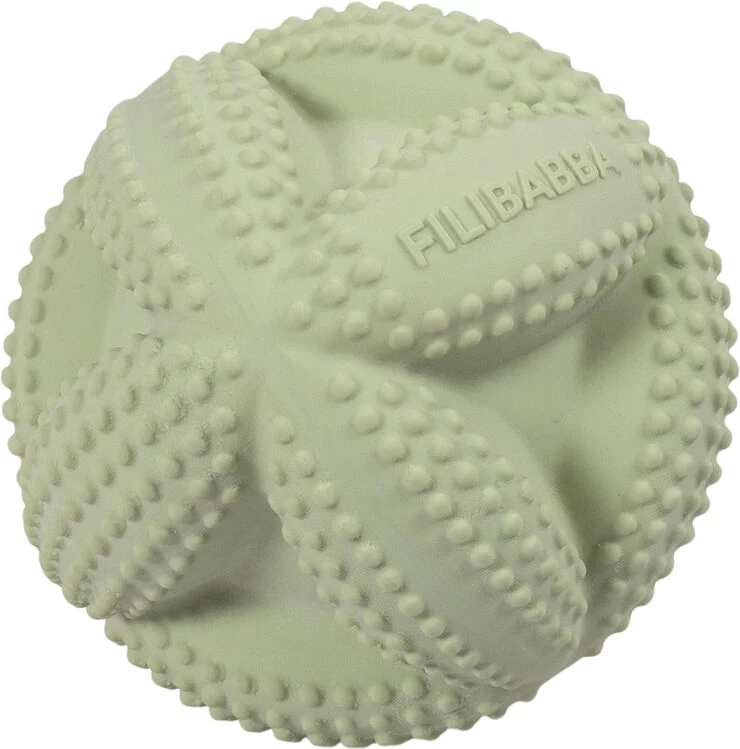Isa grab ball er designet med henblik på motorisk udvikling. Med hjertet i alle vores produkter har vi skabt en bold kollektion, med taktile overflader, gode egenskaber og i fine farve nuancer. Isa grab ball er produceret i 100% naturgummi og er med til at stimulerer barnets motorik og gribereflekser. Med en fin mild klokke lyd indeni, stimulere den også barnets høre sanser. På overfladen er der produceret små dupper som giver et godt greb for selv helt små hænder, samtidige er alle kanter er bløde, som kan hjælpe på ømme gummer og er samtidige stimulerende for den taktile sans. Fantastisk produkt til at udvikle barnets finmotorik. Da bolden er håndlavet, kan udtrykket variere en smule fra billedet