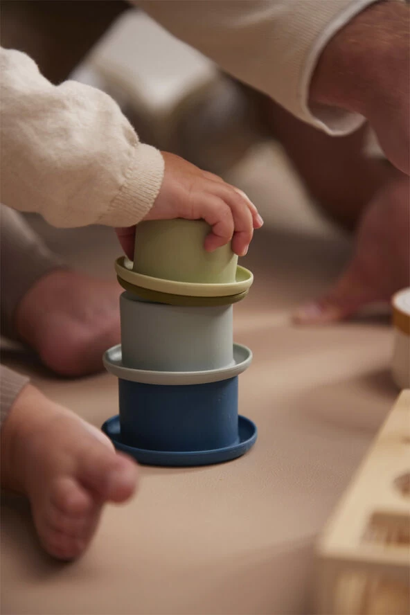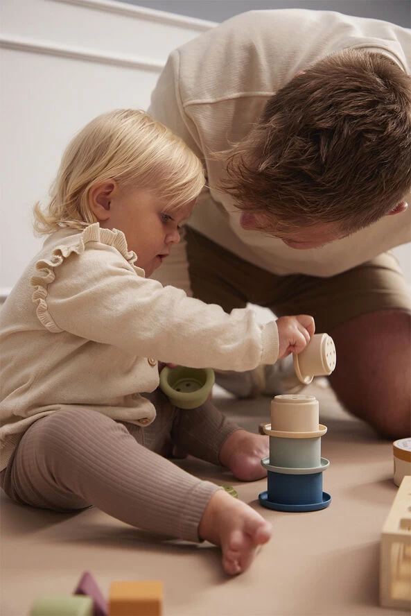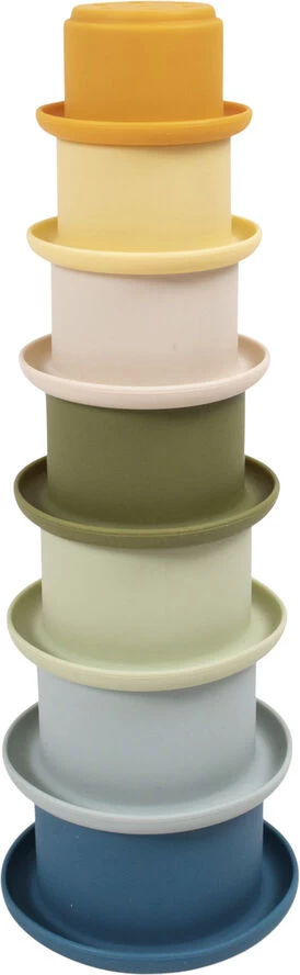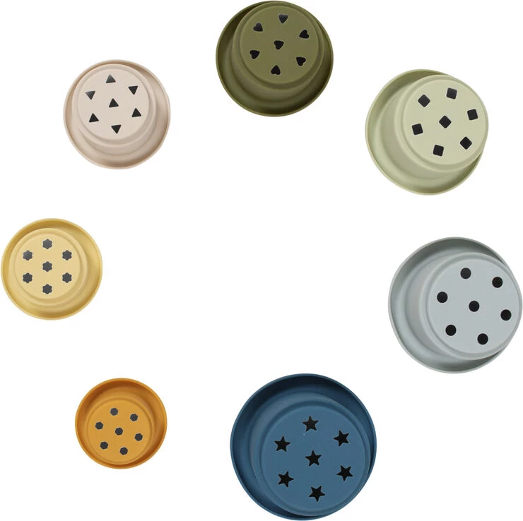 Stabl alle syv kopper for at skabe dit eget lille tårn og opdag, at det er lige så sjovt at vælte det, som det er at stable det! Vores stablelegetøj udvikler dit barns fin- og grovmotorik samt hånd-øje-koordination og med huller i bunden er stablekopperne også perfekte til leg i badet. De bløde og fleksible stablekopper er lavet af slidstærk og superblød silikone, som også tåler opvaskemaskine.