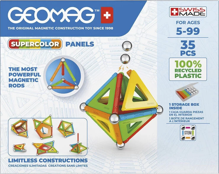 Konstruktionsleget°j med magnetiske dele. Med 100% genbrugsplastik.