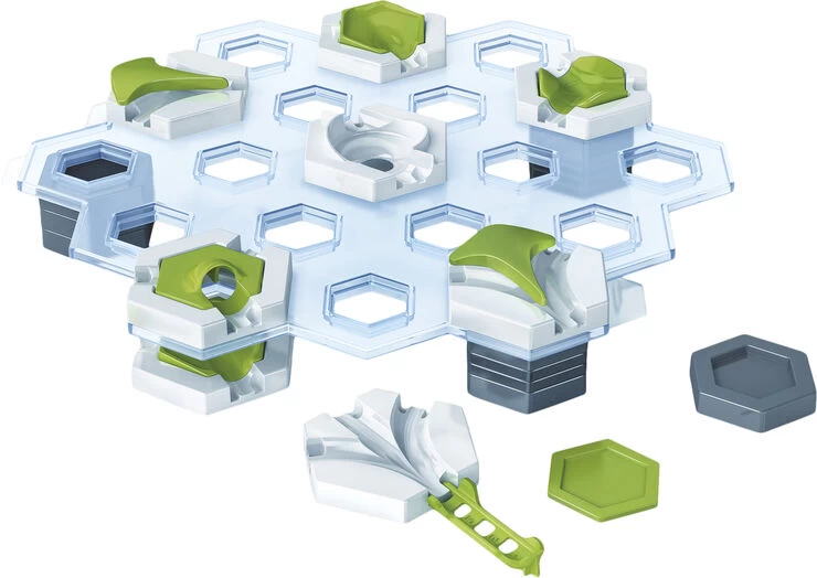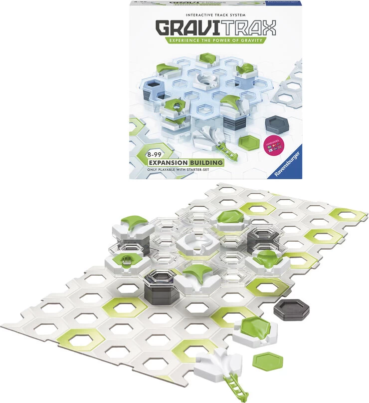 Mangfoldiggør dine muligheder! Med dette sæt kan du udvide dit kuglebanesystem, idet du tilføjer ekstra bundplader og yderligere byggeelementer til dit GraviTrax startersæt Øg dine kombinationsmuligheder, og få endnu flere komplekse kuglebaner Hvor mange omveje kan din kugle trille, inden den når i mål? Du får flere informationer under Gravitraxcom Download den gratis app til din smartphone eller tablet og afprøv nye baner i appen, og byg dem derefter i virkeligheden med dit GraviTrax-system Indhold 2 bundplader, 1 gennemsigtig etage, 8 store højdemoduler, 4 små højdemoduler, 2 sporskifter, 1 3-i-1, 1 hvirvel, 1 målstige. 4 basismoduler, indsatser til basismodulerne 2 fangere, 1 frit fald, 1 splash, 1 mål Kan kun anvendes sammen med GraviTrax startersættet Fra 8 år