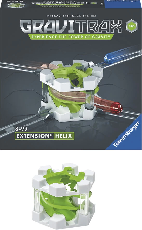 På kryds og tværs. over og under! Med Helix kan du sætte op til seks forskellige skinner på Når en kugle kommer ind i Helix bevæger den sig et niveau ned uden at skifte retning Op til seks kugler kan passere gennem dette Action-modul samtidig! Kombineret med et Starter sæt kan du bygge spændende baner, uden at kuglerne generer hinanden på deres vej mod målet Hvor mange kugler kan krydse hinanden på din bane? Dette sæt indeholder 1 x Helix Dette STEM-system Science, Technology. Engineering and Maths er ideelt til at lære børn om tyngdekraft, magnetisme, kinetisk energi og sjov Er du stødt på en forhindring? Freestyle med dit eget banedesign. eller løs de medfølgende opgaver, der hjælper dig med at komme i gang med GraviTrax! Bliver kuglen stoppet af tyngdekraften, eller flyver den væk. inden den når målet? Til børn fra 8 år og op