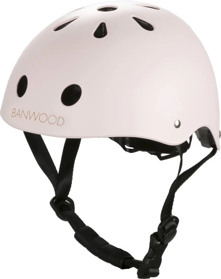 Banwood cykelhjelm i et klassisk design. Cykelhjelmen har justérbare stropper under hagen og en justeringsknap på bagsiden. Giver dit barn maksimum beskyttelse på cykelturen.