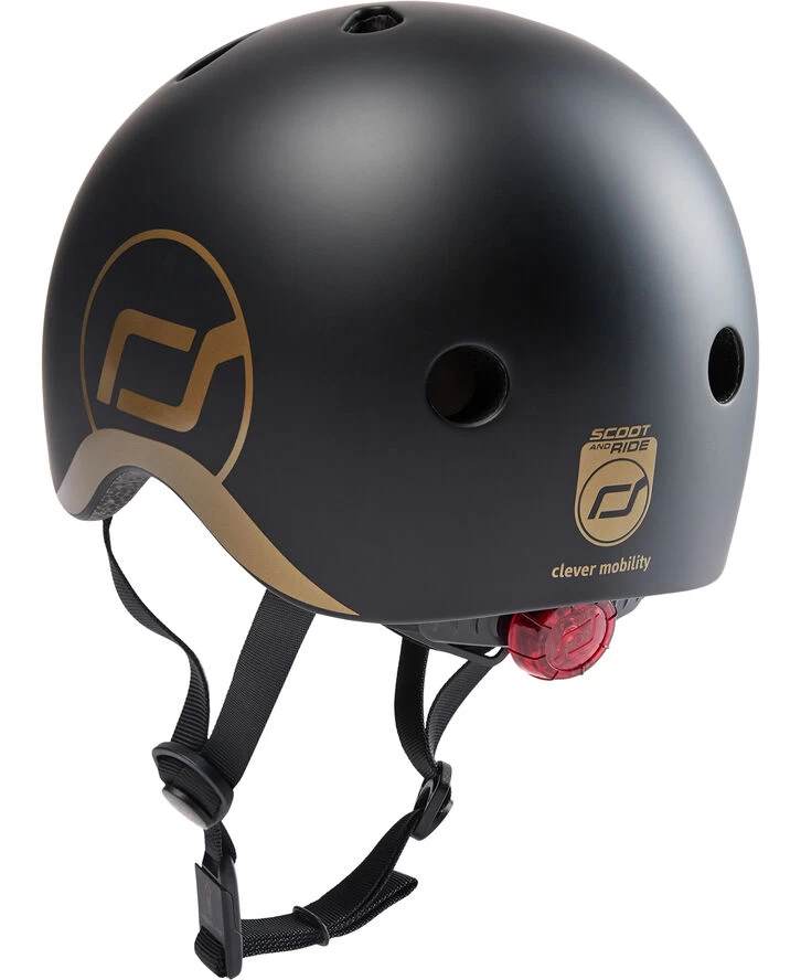 The Scoot & Ride reflective babyhelmet has a mat soft touch look on the outside, a lightweight material on the inside, and is available in 4 different colours. Each colour has his own cute animal print made out of reflective material for extra visibility and safety. The helmet fits kids of a very young age as it starts from XXS (45cm) size and can be easily adjusted up to S (51 cm). The helmet is also equiped with an LED light on the back for even more visibility, a soft chin pad and super light weight for comfortable wearing. Additionaly the helmet has an easy to use magnetic buckle that avoids pinching the skin of your little rider. Stay even more visible in style with this awesome looking next generation Scoot & Ride helmet!
