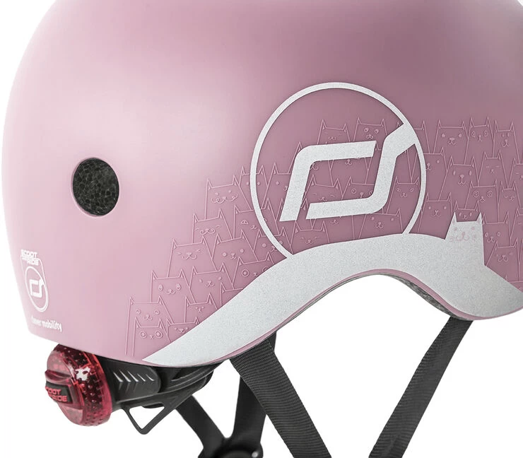 The Scoot & Ride reflective babyhelmet has a mat soft touch look on the outside, a lightweight material on the inside, and is available in 4 different colours. Each colour has his own cute animal print made out of reflective material for extra visibility and safety. The helmet fits kids of a very young age as it starts from XXS (45cm) size and can be easily adjusted up to S (51 cm). The helmet is also equiped with an LED light on the back for even more visibility, a soft chin pad and super light weight for comfortable wearing. Additionaly the helmet has an easy to use magnetic buckle that avoids pinching the skin of your little rider. Stay even more visible in style with this awesome looking next generation Scoot & Ride helmet!