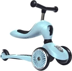 Highwaykick 1 er et 2-i-1 løbehjul, der kan justeres, så det er med sæde til de mindste og i takt med barnet vokser, kan det laves til et ’rigtig’ løbehjul.