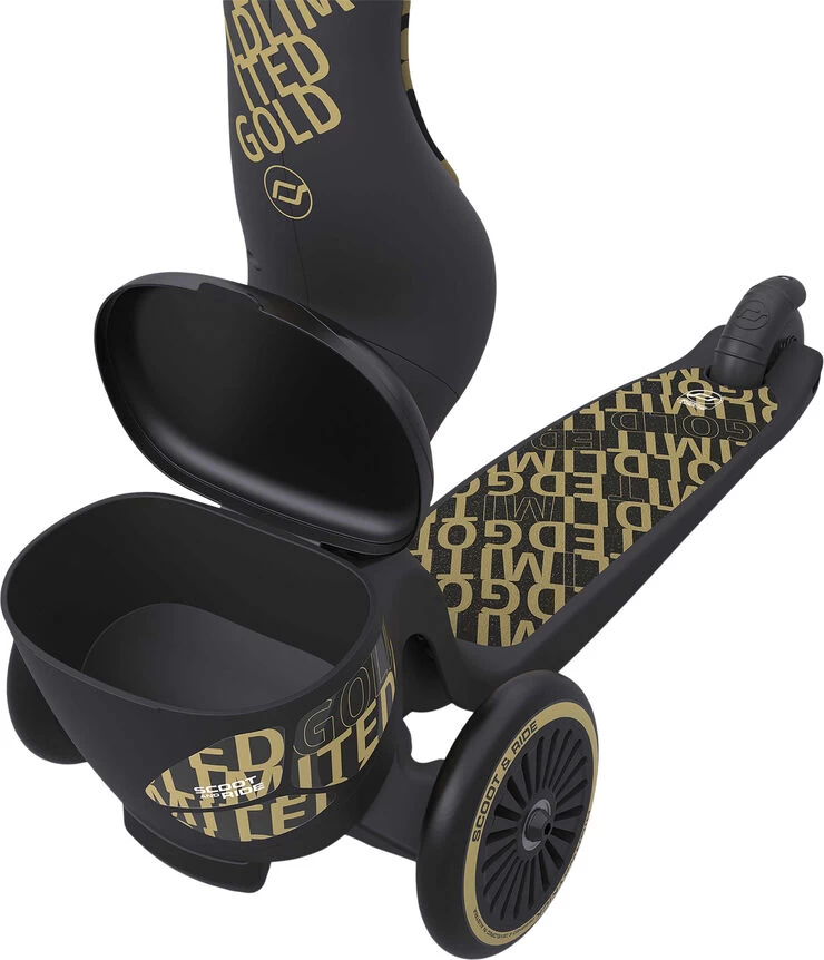 The Highwaykick 1 Lifestyle is the ideal companion for children aged one to five. It is a 2-in-1 one kickboard with seat. This Lifestyle edition has a cute storage box on the front to take their favorite cars or stuffed animal for a ride. No tools needed for adjusting the seat height or converting it into scooter modus. It grows easily together with your little one. Because of its stability this product gives the little ones the opportunity to move safely and comfortably inside and outside. The pattented safet pad in the front offers extra security and prevends tipping over.