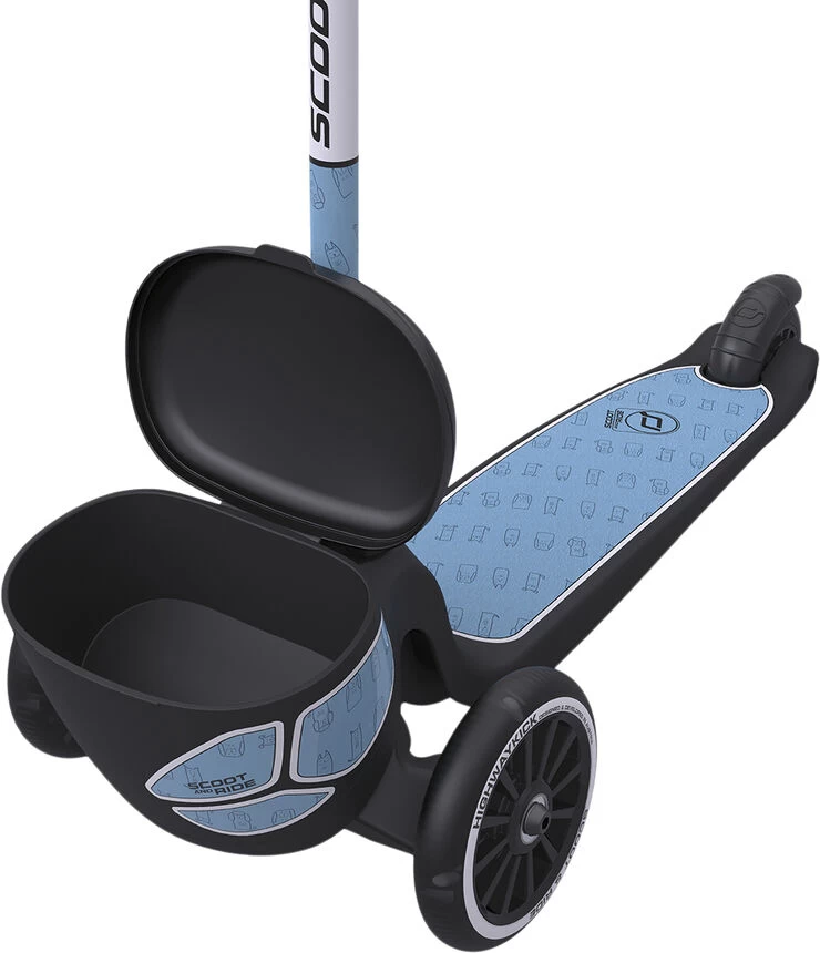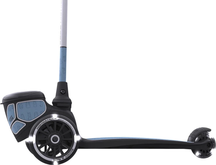 The Highwaykick 2 Lifestyle is a simple, playful, lightweight 3 wheeled scooter with a cute storage box on the front to take along their favorite car or stuffed animals. Cause we all know that kids just love to take their favorite toy for a ride. It’s designed for kids aged 2+ and holds max. 50kg (110 lbs). And it comes in 6 super cool, funky and stylish graphics. It has a removable lightweight handlebar and a full anti-slip griptape lightweight deck. It’s simple, stylish and playful …