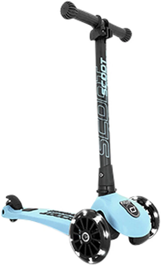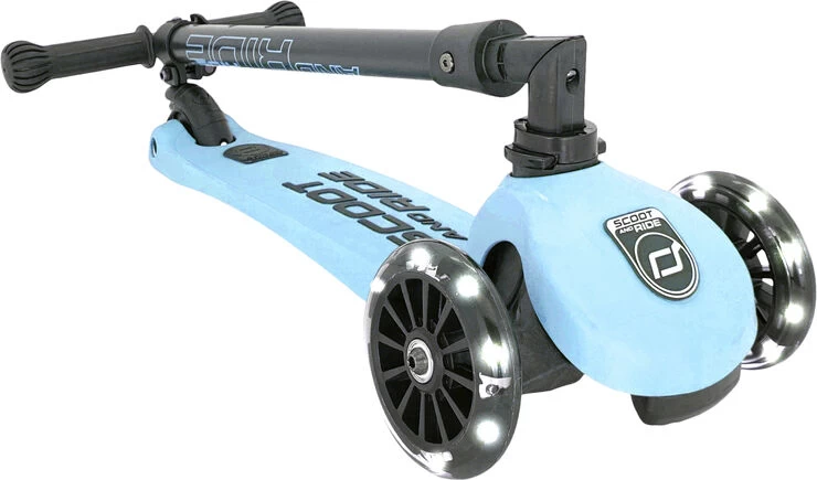 The Highwaykick 3 is the ideal companion for children over 3 years. The Heightadjustable and foldable handlebar adapts ergonomically to the body size and makes the transportation of the product very easy. Durable materials guarantee fun for a long time and the patented -safety pad- provides additional safety for kids. The new colours with the black T-bar and the white LED lightning wheels gives it a unique look and will make them for sure the coolest kid on the block.