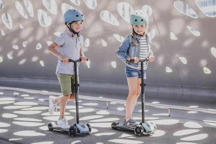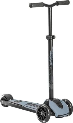The Highwaykick 5 is the ultimate kickboard for kids and adults. High-grip & shock-absorbing jumbo wheels with white led wheels on the front and a durable sandwich construction allow a 80 kg payload easily. The deck comes extra-wide and long with anti-slip rubber. The height adjustable T-bar can be removed by a simple push of a button.