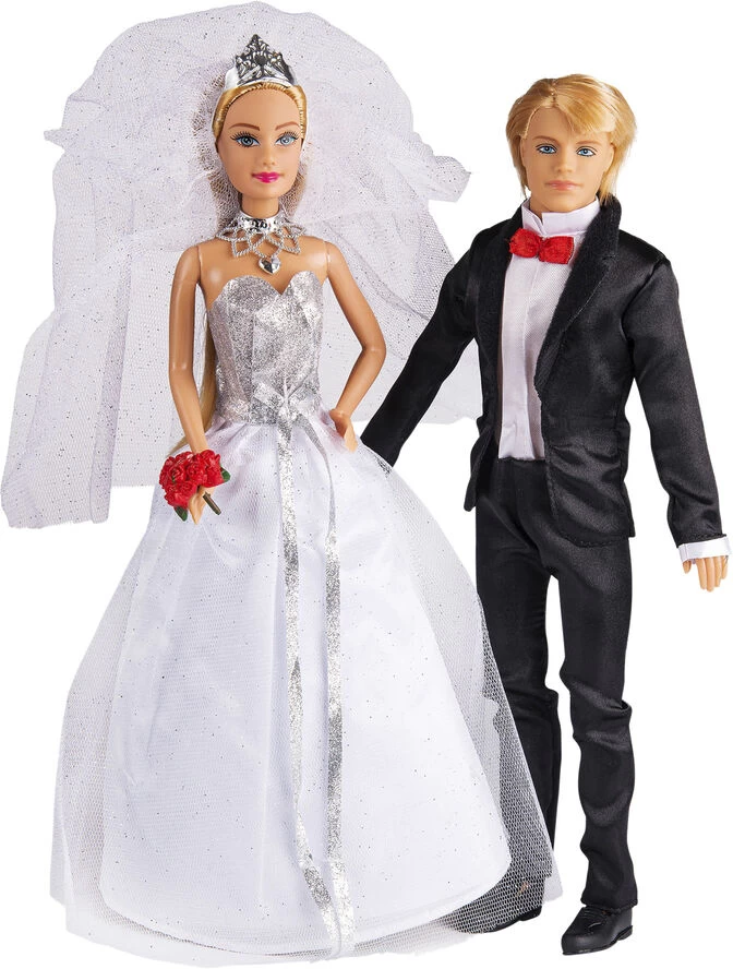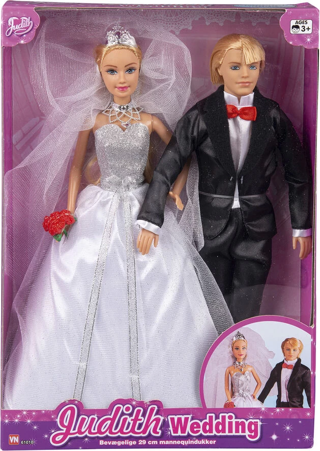 Judith og Jack brudepar Sæt med 2 bevægelige mannequindukker og brudebuket