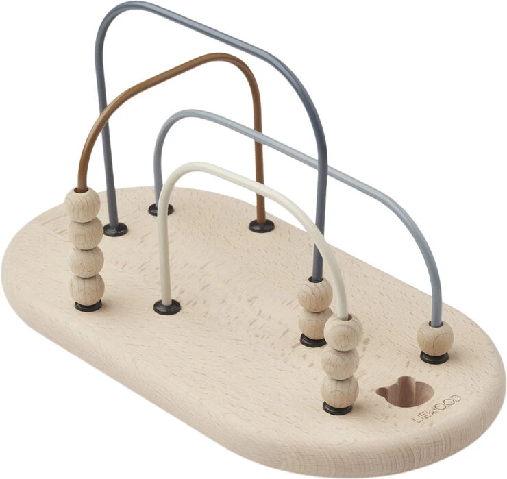 KUGLEBANE TIL BØRN De virker enkle for voksne, men leg med en kuglebane forbedrer dit barns hånd-øje-koordination, sprogudvikling og formgenkendelse. Ronald kuglebanen har seks spor og runde træperler. OM PRODUKTET Materiale- 100% bøg Holdbart og slidstærkt materiale Let at rengøre CE-mærket DETALJER