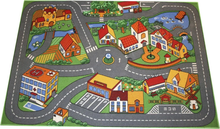 Klassisk vejbanetæppe med motiv af bymiljø Måler 95 x 133 cm og passer til biler i skala 1 64 samt 1 43 For alle aldre