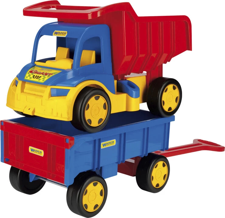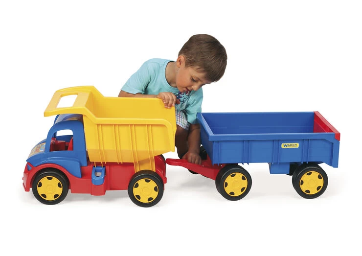Kæmpe truck med anhænger/trækvogn Lastbil 55x35x33 cm der kan bære 80 kg med tiplad og læssefunktion samt anhænger/trækvogn der kan bære 60 kg
