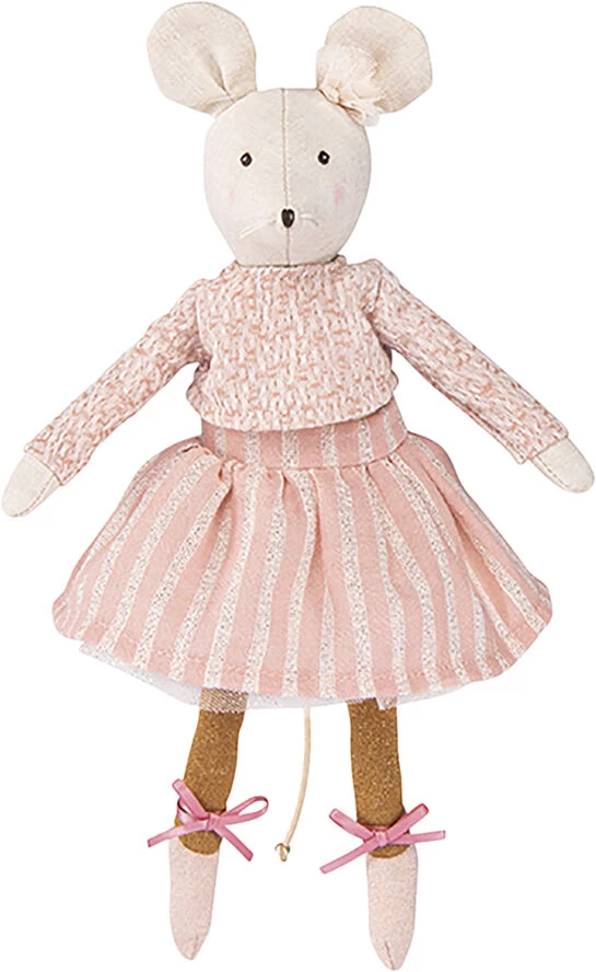 Anna er en lille dansemus i vævet cambric med et sødt broderet ansigt og pudrede kinder. Hun er smuk i pink og udrustet fra top til tå i sit danseudstyr. Den perfekte ven til at dele magiske øjeblikke passer også sammen med tøjet fra tutu-kufferten Suzies garderobe. Vaskeanvisning: Maskinvaskes 30°C uldprogram. Tåler IKKE tørrtumbler Materiale: Bomuld, polyester Produkt: 28 cm høj Alder: 1-7 år