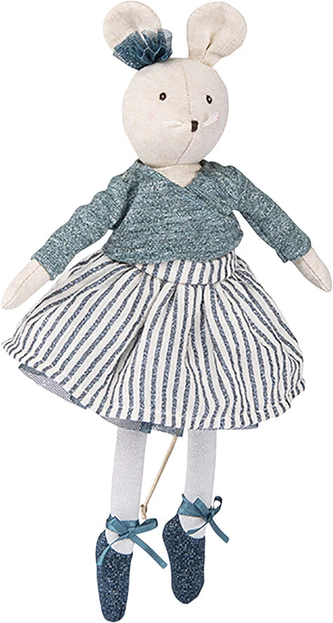 Charlotte er en lille dansemus i vævet cambric med et sødt broderet ansigt og pudrede kinder. Hun er smuk i blåt og udrustet fra top til tå i sit danseudstyr. Den perfekte ven til at dele magiske øjeblikke passer også sammen med tøjet fra tutu-kufferten Suzies garderobe. Vaskeanvisning: Maskinvaskes 30°C uldprogram. Tåler IKKE tørrtumbler Materiale: Bomuld, polyester Produkt: 30 cm høj Alder: 1-7 år