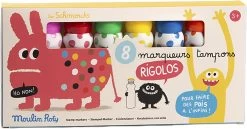 Med disse sjove stempeltusser kan du lave prikker i alle farver! Lækkert design med rundt stempelhoved og et godt greb. Lav fine mønstre, dyr og ting med masser af store prikker! Den runde hætte er smart og praktisk, og tusserne sidder godt i hånden. Pakken indeholder 8 stk stempeltusser. Afvaskelige. Hurtigt-tørrende. Materiale: PE-PP, vand, glycerin Emballage: 25,5 x 12,5 x 3,5 cm Alder: 3-7 år